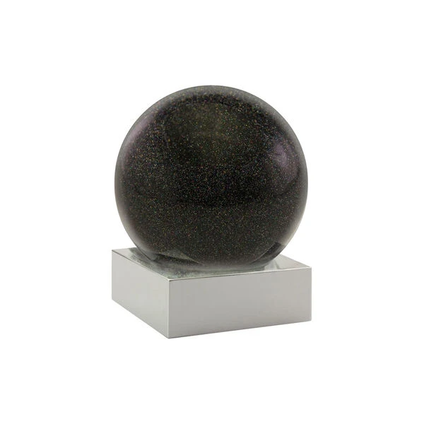 Eclipse snøkule i glass fra CoolSnowGlobes. Farge: sølv/sort. Mål: H: 12,5 x Ø 10 cm.