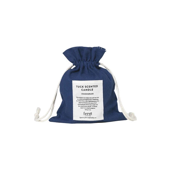 Tuck duftlys i stentøy og soyavoks fra ferm LIVING. Farge: blue. Mål: H: 9 x Ø 9 cm. Duft: sitrongress. Brenntid: 40 timer.