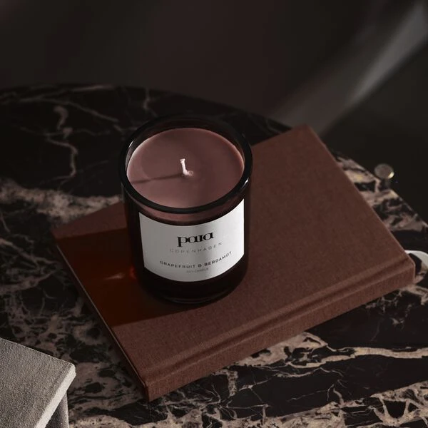 Grapefruit & Bergamot duftlys i glass med økologisk dyrket soyavoks og økologisk bomullsveke fra Paia Copenhagen. Farge: rosa. Inneholder: 220g Noter: orange, grapefruit, bergamot og amber. Brennetid: opp til 40 timer.