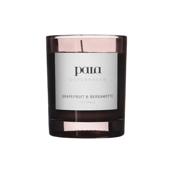 Grapefruit & Bergamot duftlys i glass med økologisk dyrket soyavoks fra Paia Copenhagen. Farge: rosa. Inneholder: 300 g. Brennetid: opptil 60 timer. Duftnoter: orange, grapefruit, bergamot og amber..