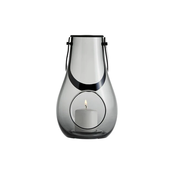 DWL lanterne i munnblåst glass og kjernelær fra Holmegaard. Farge: smoke. Design: Maria Berntsen.