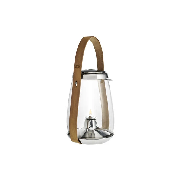 DWL oljelanterne i munnblåst glass fra Holmegaard. Farge: klar. Mål: H: 32,5 x Ø 15 cm. Design: Maria Berntsen.