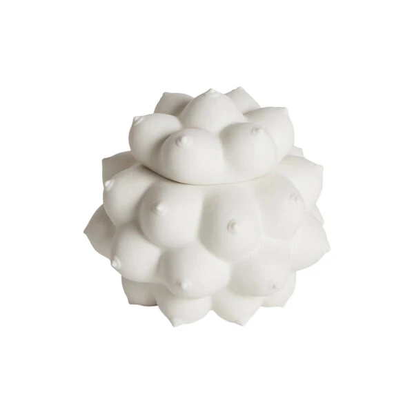 Georgia Orb boks i matt proselen fra Jonathan Adler. Farge: hvit. Mål: H: 15 x Ø 15 cm.