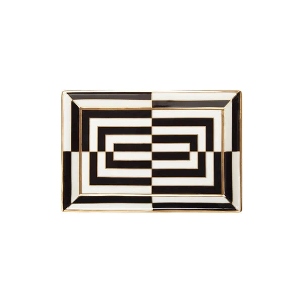 Op Art fat i porselen fra Jonathan Adler. Farge: svart/gull. Mål: L: 12,5 x B: 18 cm.