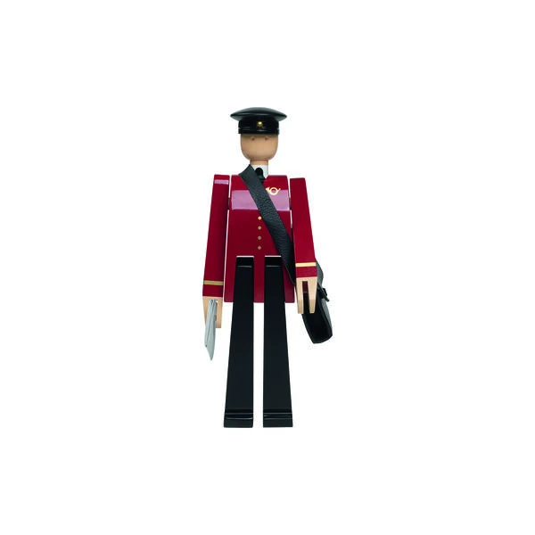 Postmann Einar i malt bøk fra Kay Bojesen Denmark. Farge: sort/rod. Mål: H: 20 cm. Design: Kay Bojesen.