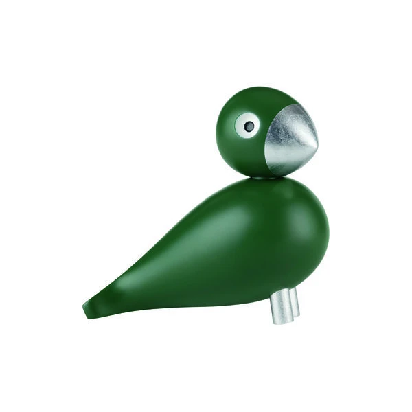Kay Bojesen sangfugl Georg i malt bøk fra Kay Bojesen Denmark. Farge: grønn/sølv. Mål: H: 15,5 x B: 16 x D: 8 cm. Design: Kay Bojesen.