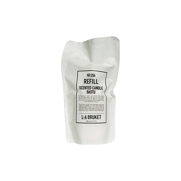Duftlysrefill laget av voks fra økologisk soya med en duft inspirert av den multisensoriske kraften til den svenske badstuen – en varm og osende blanding av sedertre og furutjære med et hint av friske bjørkeblader
