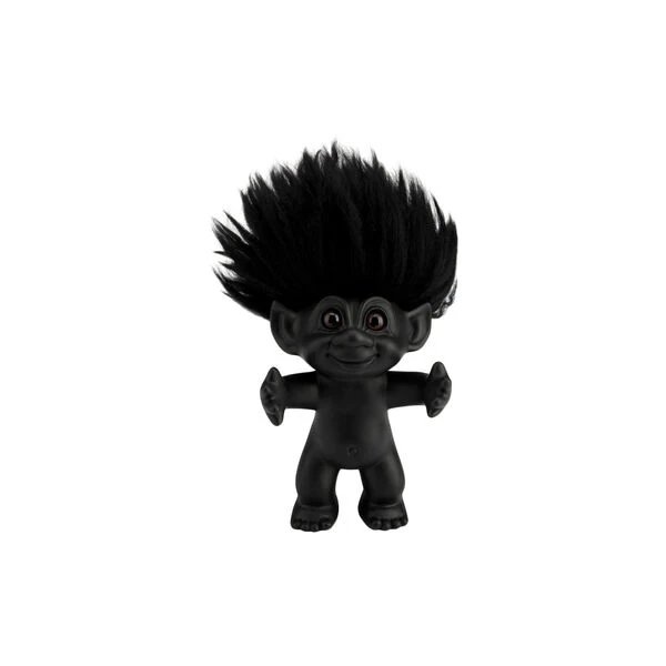 Lykketroll i keramikk med hårt av saueskinn fra BySommer. Farge: matt sort/sort hår. Mål: H: 12 cm.