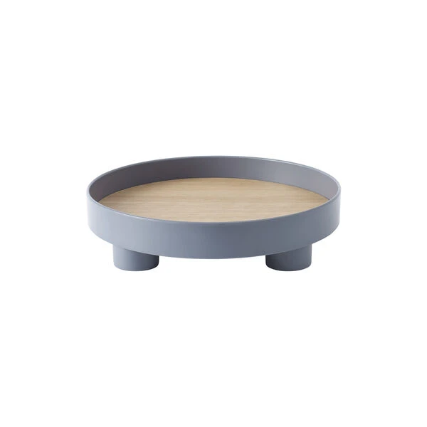 Platform serveringsbrett i støpt ABS og lakkert eikefinèr fra Muuto. Farge: blue-grey. Design: Sam Hecht & Kim Colin.
