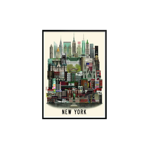 New York plakat trykt på papir fra Martin Schwartz. Farge: multifarget. Størrelse: A3. Ramme er ikke inkludert.