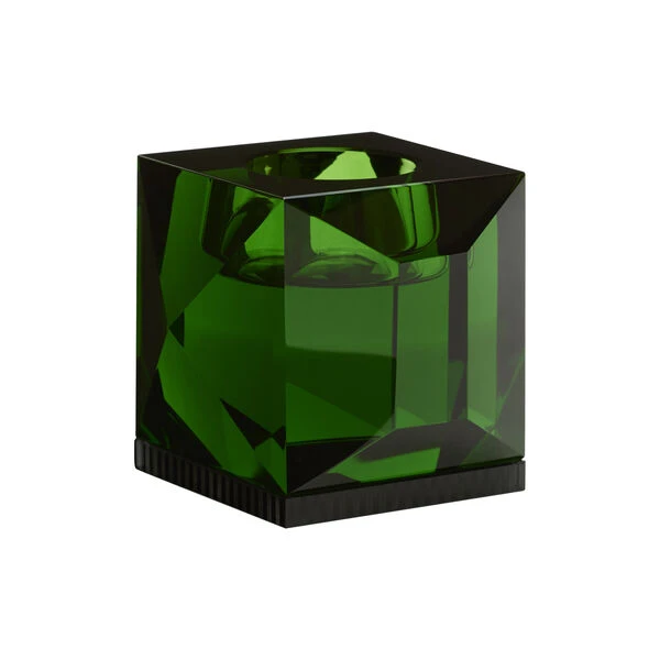 Denne ekstraordinære telysholderen har et fasettert edelstensutseende som fremkaller en art deco-sensibilitet. Ophelia telysholderen er laget av håndskårne krystaller. Fargene på dette telyset skaper en dramatisk effekt, med den svarte skyggelagte kuben satt på en klar og raffinert firkantet krystallbunn med overdådige vertikale graveringer. En virkelig avantgarde finish. Mål: H: 8 x B: 9 x D: 9 cm.