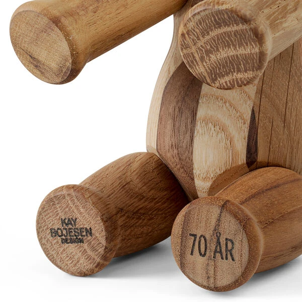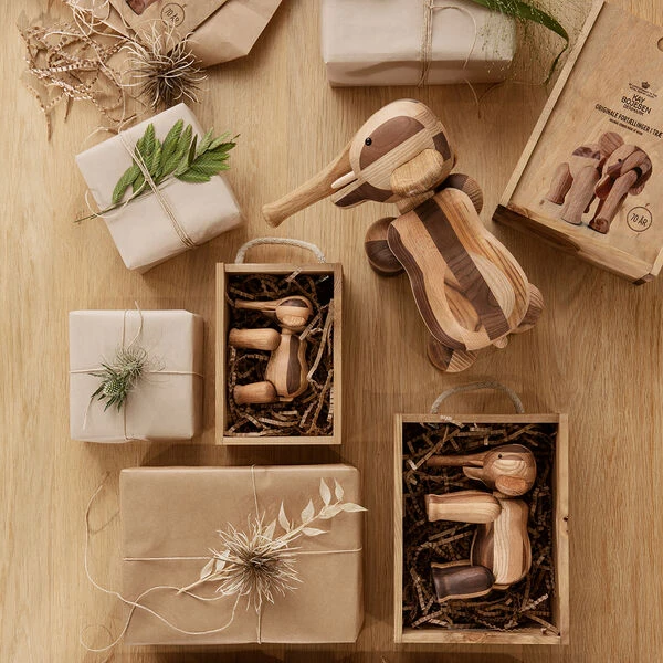 I 2023 feirer Kay Bojesens ikoniske og elskede elefant 70-årsjubileum. Vi feirer anledningen med en Elefant Reworked – en spesialutgave laget av en herlig blanding av ulike tresorter, som teak, valnøtt, eik, ask og lønn – alt fra overskudd og rester fra tre. Med fokus på oppsirkulering og minimering av ressursavfall, har Elefant Reworked en ny, moderne og bærekraftig dimensjon, slik at den ikke bare anerkjenner fortiden, men også fremtiden. Med hensyn til miljøet er den omarbeidede elefanten laget av resttre, noe som betyr at hver elefant vil se forskjellig ut avhengig av hvilke tresorter som blir til overs den dagen de blir produsert. Vi kan med andre ord ikke garantere hvilke tresorter hver enkelt av Reworked-elefantene er laget av. Men vi kan garantere at hver eneste elefant er enda mer unik enn den originale klassikeren, hvis mulig. Elefant Reworked mini er 9 cm høy, har et 70-årsjubileumsstempel under en fot og kommer i en spesiell jubileumseske i tre i begrenset opplag.