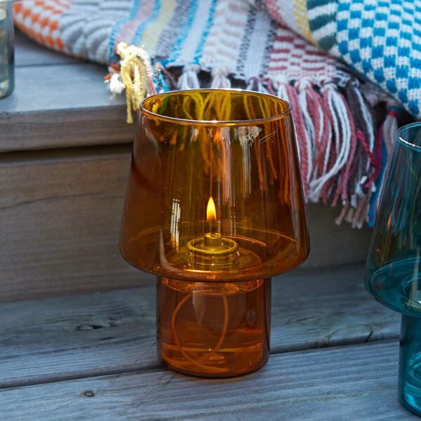 VIVA hurricane i borosilikat-glass fra RIG-TIG. Farge: amber. Lyskilden til VIVA hurricane kommer fra 100% vegetabilsk olje som selges separat.
