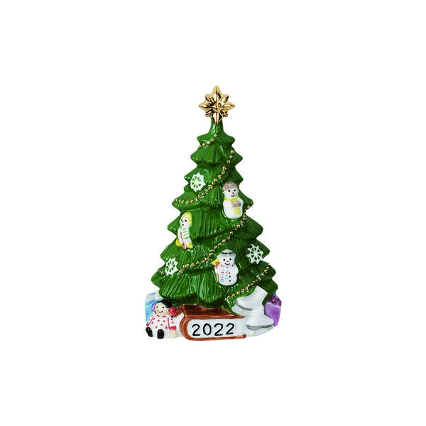 Årets juletre 2022 i porselen fra Royal Copenhagen. Årets juletre er sjarmerende dekorert med glitrende iskrystaller og en familie med snømenn. Gaver til hele familien venter under treet: skøyter, truger og leker. Den årlige juletrefiguren, laget av kunstneren Sven Vestergaard, er håndmalt med vakre detaljer og har blitt utgitt hvert år siden 2007.
