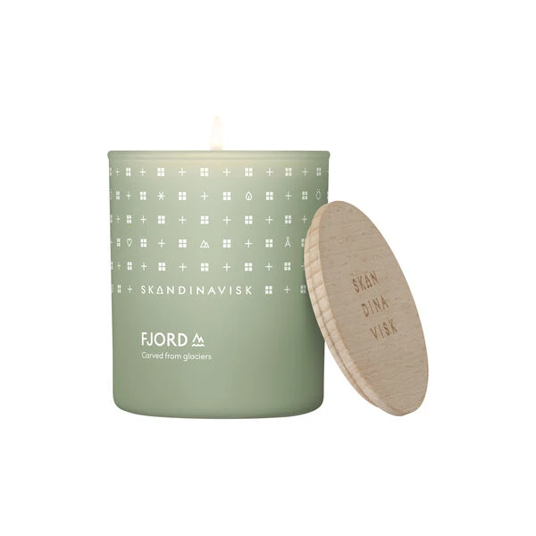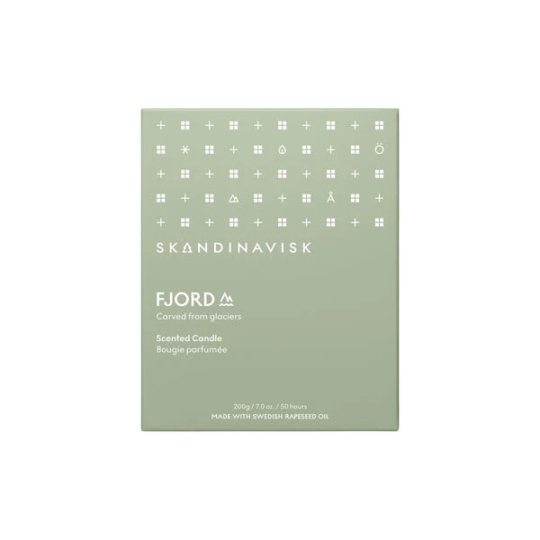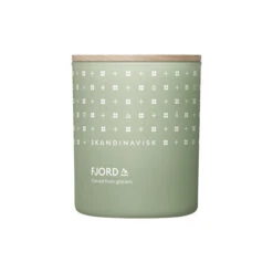 FJORD duftlys fra Skandinavisk. Farge: lysegrønn. Mål: H: 9,9 x Ø 7,9 cm. Inneholder: 200 g. Brennetid: 50 timer. Duft: eple- og pæreblomster, frukthage samt rips.