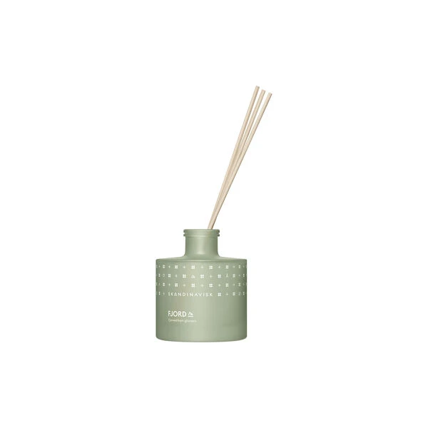 FJORD romduft fra Skandinavisk. Farge: lysegrønn. Mål: H: 8 x Ø 9,8 cm. Inneholder: 200 ml. Duft: eple- og pæreblomster, frukthage samt rips.