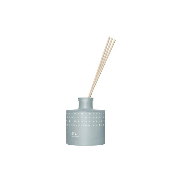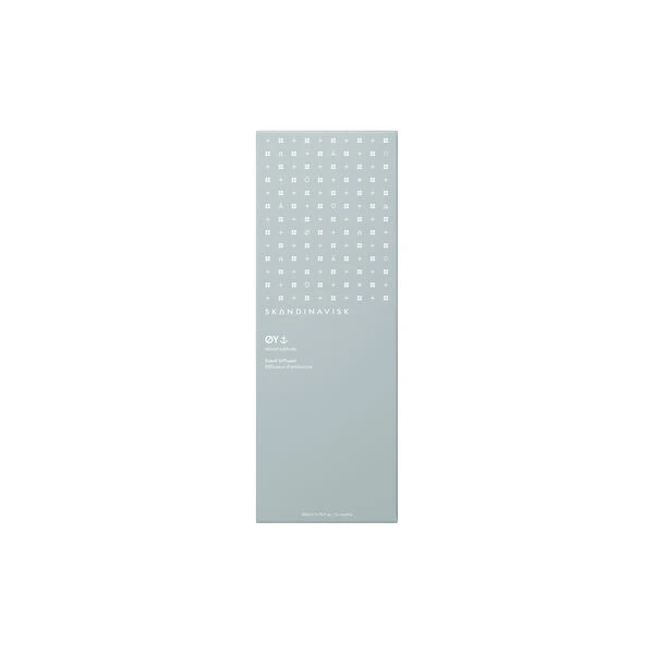 ØY romduft fra Skandinavisk. Farge: lyseblå. Mål: H: 8 x Ø 9,8 cm. Inneholder: 200 ml. Duft: villeple, hunderose, kildemose og grønne blader.
