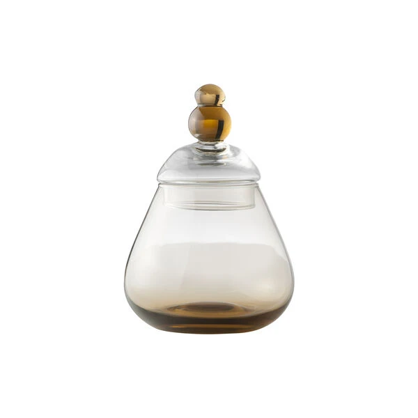 Skog bonbonniere i munnblåst, farget glass fra Wik & Walsøe. Farge: klar/brun. Mål: H: 16 x Ø 11 cm. Design: Linda S. Walsøe.