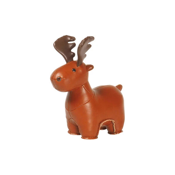 Züny Baby Elg i håndsydd kunstlær med fyll av polyester og stålkuler fra Edo Copenhagen. Farge: brun. Mål: H: 12 x L: 9 x B: 12 cm.